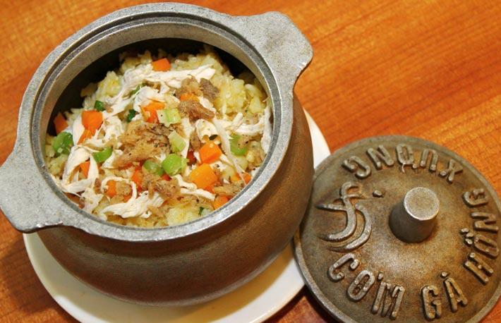 Cơm gà Hồng Xương được nấu từ loại gạo dẻo thơm cùng với nước luộc gà theo một công thức bí truyền riêng, có hương thơm hấp dẫn. Đặc biệt hơn, gạo phải được nấu bằng thố gang thiết kế riêng để hạt cơm vừa ăn, không nát, lại thấm đều nước gà nên có màu vàng ươm, hạt thơm vị béo.